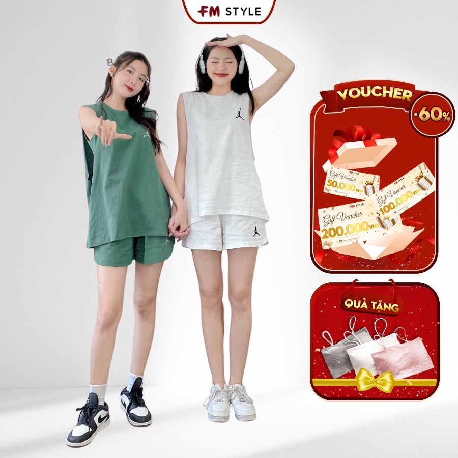 Set đồ bộ nữ FM Style tank top bóng rổ áo thun sát nách kèm quần đùi in hình Jordan phong cách thể thao