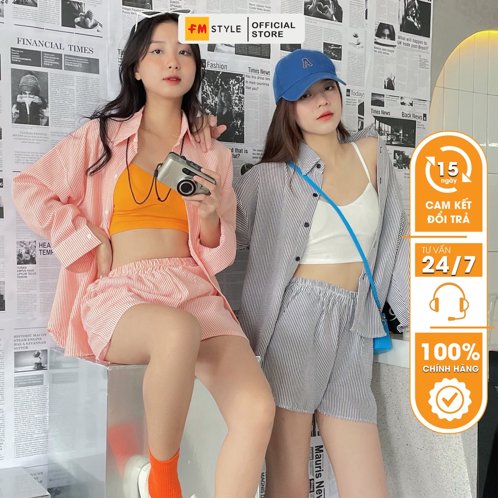 Set đồ nữ đi chơi FM Style áo sơ mi phối quần đùi cạp chun tặng bra chất xốp không nhăn thời trang mùa hè 204140027
