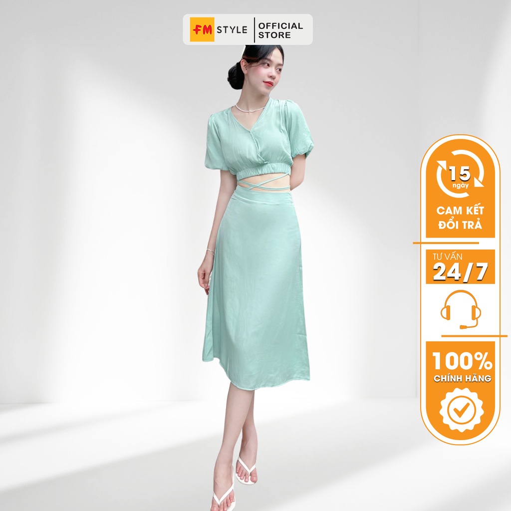 Sét đồ nữ FM Style áo kiểu cổ chéo thắt dây sau kèm chân váy dáng dài thời trang sang chảnh dự tiệc Hàn Quốc 208130047