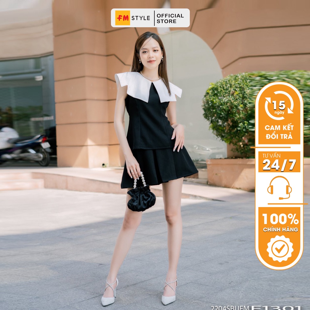 Set đồ nữ FM Style áo kiểu nữ cổ bèo phối chân váy xếp ly siêu xinh tông màu basic thời trang thanh lịch 220413489