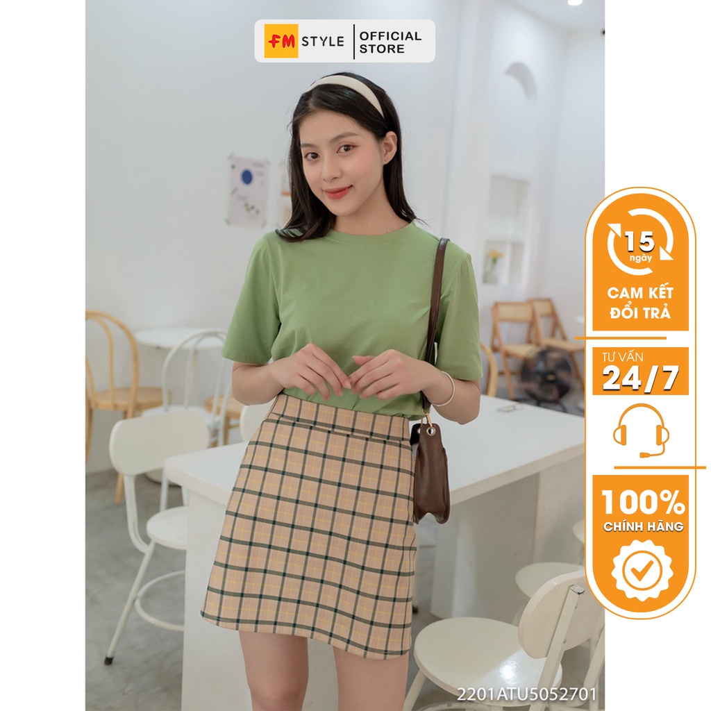 Set đồ nữ FM Style áo thun dáng lửng phối chân váy ngắn hoạ tiết caro phong cách tiểu thư thời trang 220209412