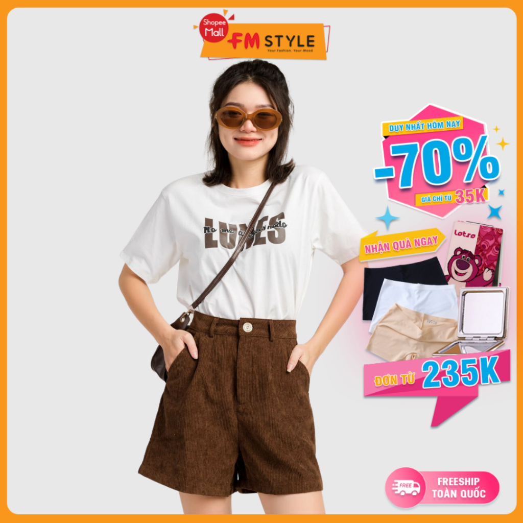 Set đồ nữ FMSTYLE áo thun tay ngắn cổ tròn kèm quần short lưng cao ống rộng phong cách trẻ trung năng động 23031485