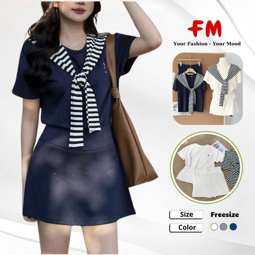 Set Váy Xinh Nữ FMSTYLE Bộ chân váy + Áo thun+khăn choàng trẻ trung phong cách hàn quốc S,M 25070625