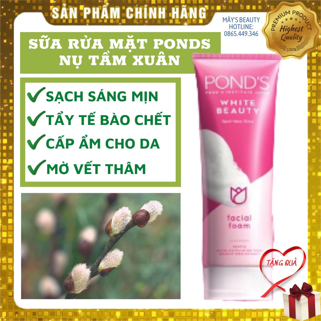 MÔ TẢ SẢN PHẨM***** Sữa Rửa Mặt Pond’s 100g Sáng Da Pond’s White BeautyBạn có biết mỗi ngày có hàng triệu tế bào chết trên da khiến gương mặt bạn bị sạm đi, kém rạng rỡ?Sữa rửa mặt sáng da Pond’s White Beauty với tác động micro-foam, công thức bọt mềm dịu nhẹ giúp nhẹ nhàng tẩy tế bào chết và bụi bẩn, bã nhờn trên da, giúp mang lại vẻ sáng mịn, rang rỡ tự nhiên cho làn da mỗi ngày!Công thức chứa Vitamin B3+ giúp làm sáng da và mờ vết thâm. Chiết xuất nụ tầm xuân giúp trung hòa các gốc tự do, cấp ẩm cho da, mang lại vẻ mềm mịn cho làn da.Hướng dẫn sử dụng: Làm ướt mặt. Lấy một lượng vừa đủ ra lòng bàn tay & tạo bọt với nước. xoa nhẹ nhàng và rửa lại với nước. Sử dụng mỗi buổi sáng và tối.Lưu ý:1. Tránh tiếp xúc với mắt. Trong trường hợp tiếp xúc với mắt, rửa sạch ngay với nước.2. Không áp dụng cho da bị kích ứng hoặc có tổn thương.Xuất xứ: Thái LanHạn sử dụng: 3 năm kể từ NSX***** Sữa Rửa Mặt Pond’s 100g Sáng Da Ngừa Mụn Pond’s Acne ClearGiới thiệu sản phẩm Sữa rửa mặt ngăn ngừa mụn Pond’s Acne Clear – Với công thức chiết xuất từ thiên nhiên: nhựa thông và cây xạ hương, Pond’s Acne Clear giúp tăng cường khả năng tự bảo vệ của da, giúp khóa và làm sạch vi khuẩn từ tận gốc, GIẢM MỤN RÕ RỆT SAU 3 NGÀY VÀ NGĂN NGỪA MỤN QUAY TRỞ LẠI.Phức hợp hoạt động Thymo-T trong giải pháp ngừa mụn Lock & Clear lần đầu tiên từ Viện nghiên cứu Pond’s giúp khóa và làm sạch vi khuẩn gây mụn từ gốc trả lại cho bạn làm da mịn màng, sạch mụn. Được kiểm chứng giảm mụn rõ rệt sau 3 ngày*HƯỚNG DẪN SỬ DỤNG: Làm ướt mặt, cho sữa rửa mặt vào lòng bàn tay, tạo bọt với nước.Lưu ý: Nếu sữa rửa mặt dính vào mắt, rửa kỹ lại với nướcBảo quản: Tránh nhiệt độ cao và ánh nắng mặt trờiXuất xứ: Thái LanHạn sử dụng: 3 năm kể từ NSX***** Sữa Rửa Mặt Pond’s 100g Sáng Da Sạch Sâu Pond’s Pure WhiteÔ nhiễm, khói bụi hay đeo khẩu trang lâu khiến da bạn đổ dầu, bí tắc lỗ chân lông? Sữa rửa mặt sáng da sạch sâu Pond’s Pure White với sự kết hợp giữa than hoạt tính và trà xanh Nhật Bản giúp detox làn da và đem lại một làn da khỏe với vẻ rạng rỡ, sáng mịn tự nhiên.- Than hoạt tính giúp làm sạch sâu, lấy đi bụi bẩn ô nhiễm ẩn sâu dưới da- Trà xanh Nhật Bản: chất ngăn ngừa oxy hóa mạnh mẽ, kết hợp cùng các tinh chất ngăn ngừa khuẩn giúp đẩy nhanh quá trình thải độc cho daHướng dẫn sử dụng: Làm ướt mặt. Lấy một lượng vừa đủ ra lòng bàn tay & tạo bọt với nước. xoa nhẹ nhàng và rửa lại với nước. Sử dụng mỗi buổi sáng và tối.Lưu ý:1. Tránh tiếp xúc với mắt. Trong trường hợp tiếp xúc với mắt, rửa sạch ngay với nước.2. Không áp dụng cho da bị kích ứng hoặc có tổn thương.Xuất xứ: Thái LanHạn sử dụng: 3 năm kể từ NSX*Bao bì thay đổi tuỳ từng đợt sản xuất