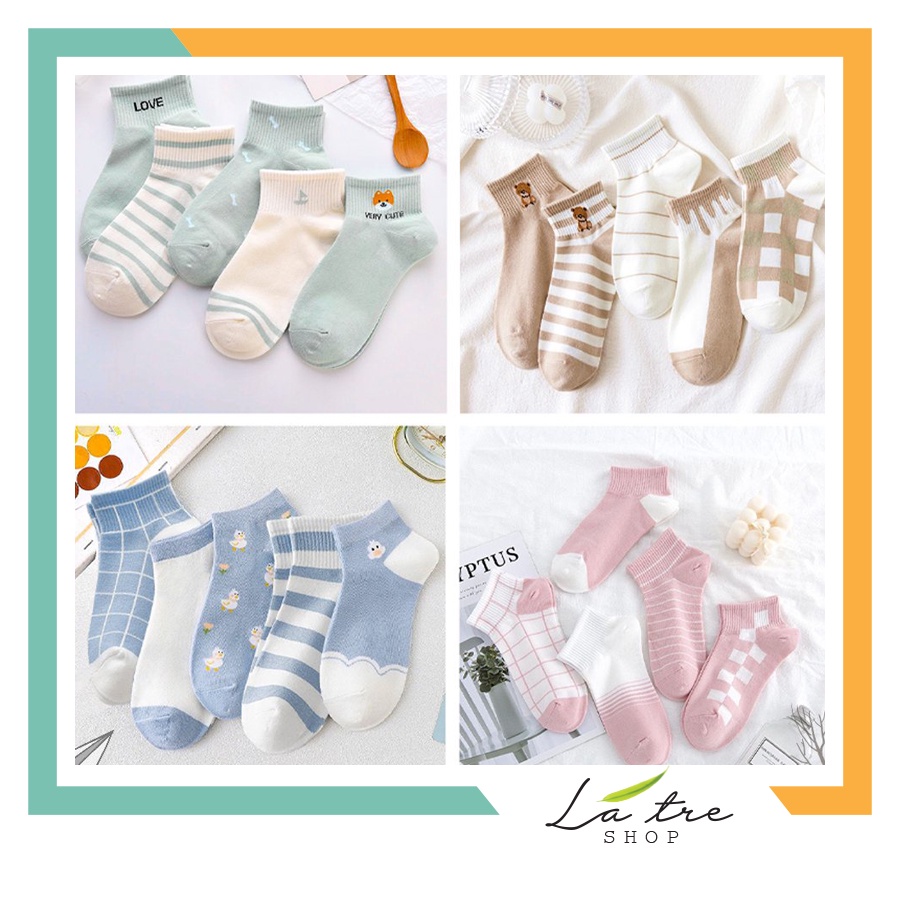 Thông tin chi tiết sản phẩm tất nữ cổ ngắn Hàn Quốc cute set 5 đôi họa tiết hoạt hình chống trơn chống trượt