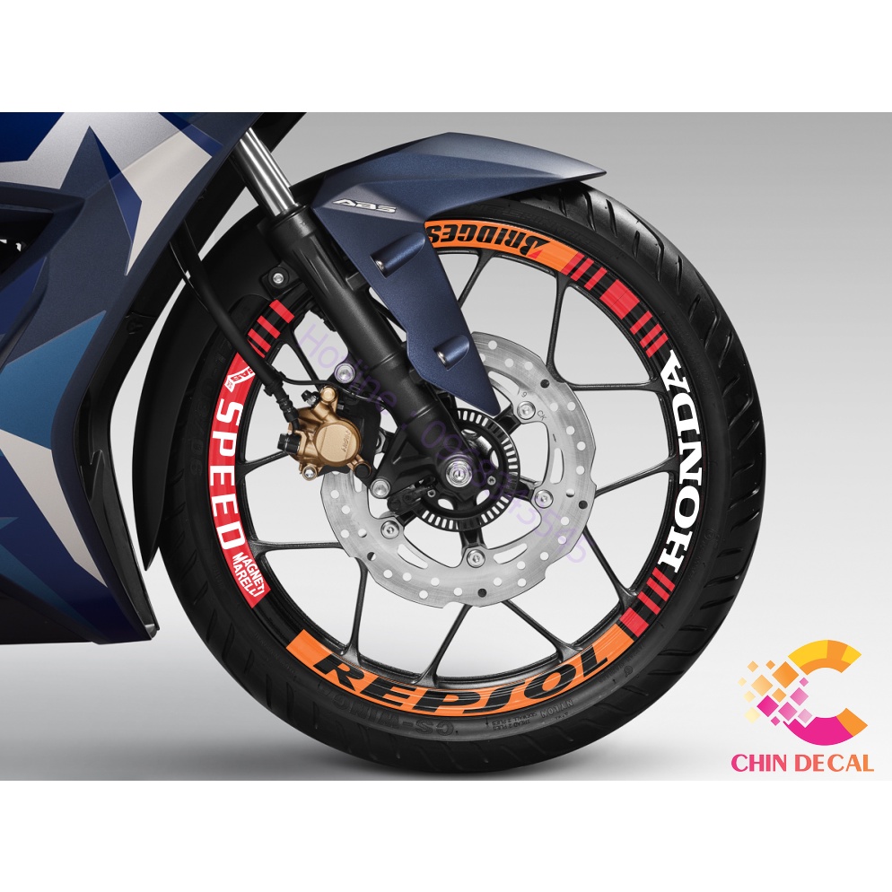 TEM DÁN VÀNH XE MÁY Mẫu REPSOL Cam Đỏ ( Decal 3 lớp chông nước chống bay màu 807 )