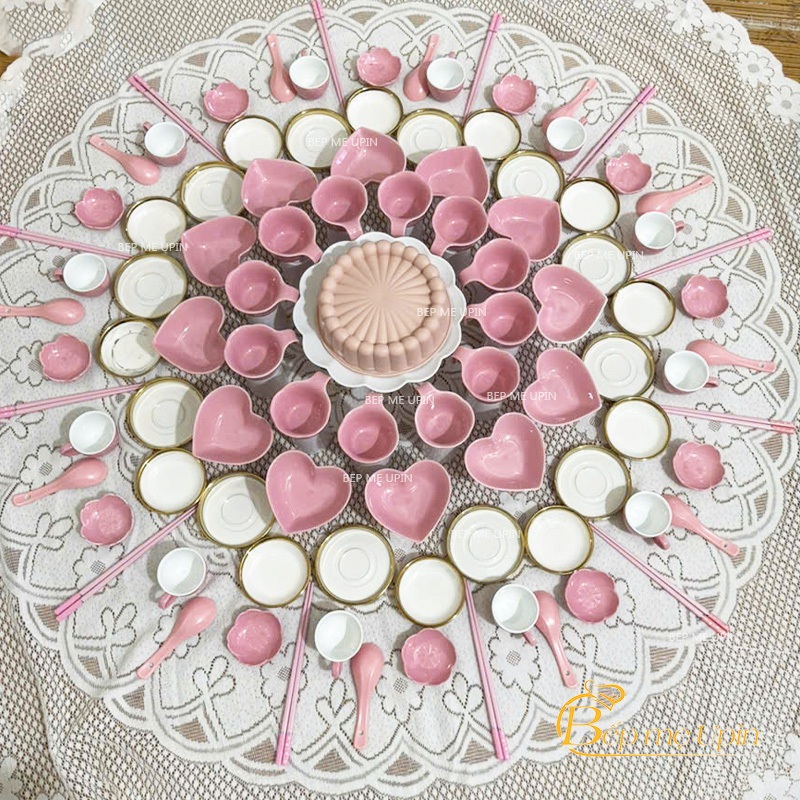 Trọn bộ mâm cúng màu hồng đồ sứ làm thôi nôi cho bé