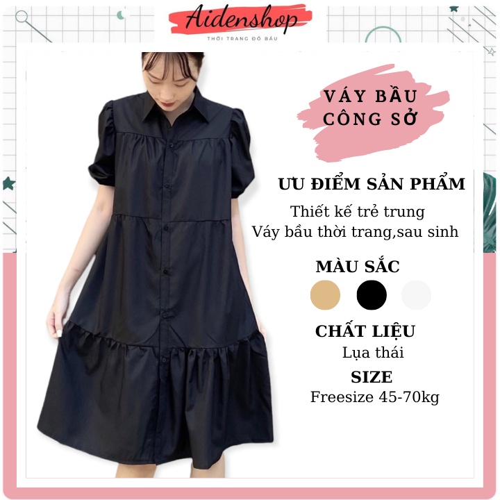 TÊN SẢN PHẨM: Váy bầu công sở sơ mi Aidenshop đầm bầu thiết kế dự tiệc