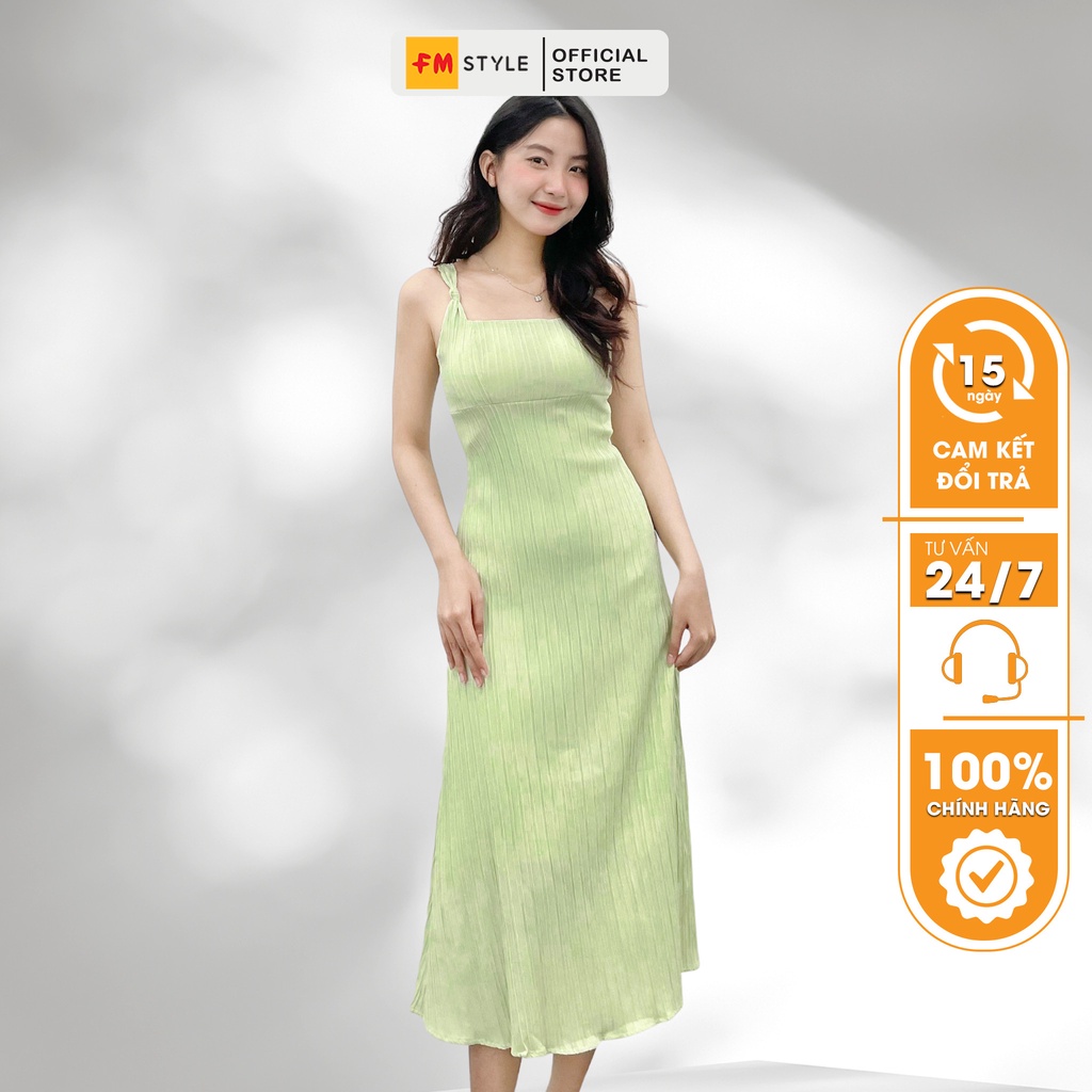 Váy 2 dây nữ FM Style thắt dáng dài cúp ngực chất vải gân mềm mịn phong cách sang chảnh thời trang Hàn Quốc