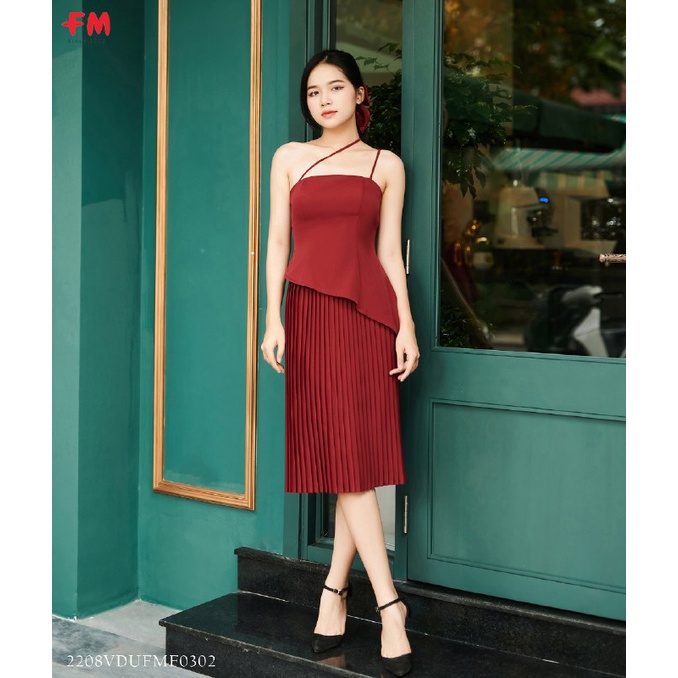 Váy dự tiệc FM STYLE 2 dây bên tà chéo xếp ly dưới dáng dài thời trang sang chảnh hàng thiết kế cao cấp 208030075