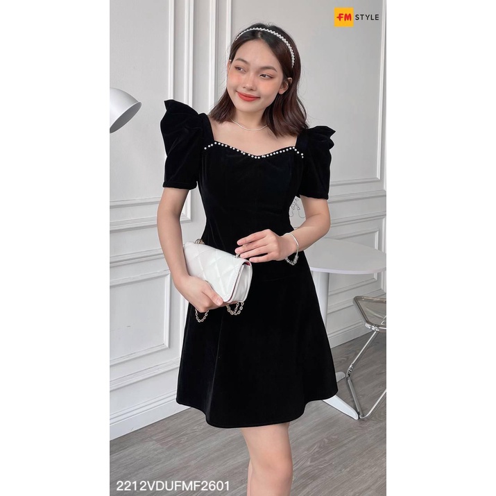 4 đánh giá choVáy nhung đỏ FM STYLE tay ngắn bồng nhọn cổ vuông viền ngọc thời trang thiết kế dự tiệc sang chảnh 22121186