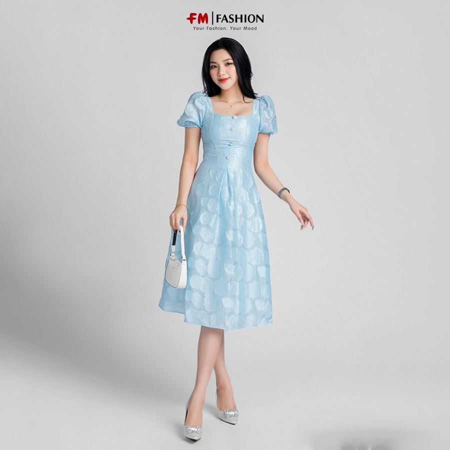 Váy nữ sang chảnh FM STYLE phối tơ hoa dáng dài đính nút ngọc thời trang thiết kế dự tiệc phong cách Hàn Quốc 23010917