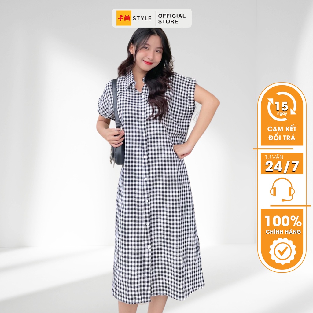 Váy sơ mi FM Style suông kiểu dáng váy suông dễ mặc, đi làm hay đi chơi đều tiện