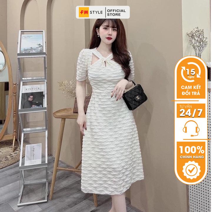 Váy thiết kế nữ FM Style gợn sóng cổ xoắn chất vải xốp nhăn sang chảnh thời trang thanh lịch 220402030