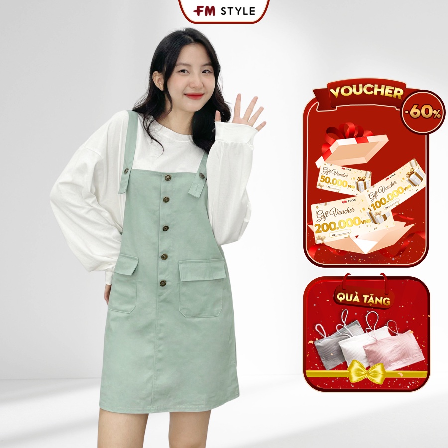 14 đánh giá choVáy yếm kaki FM Style nữ dáng dài A phối túi thời trang dễ thương nhiều màu sắc phong cách ulzzang 209100032