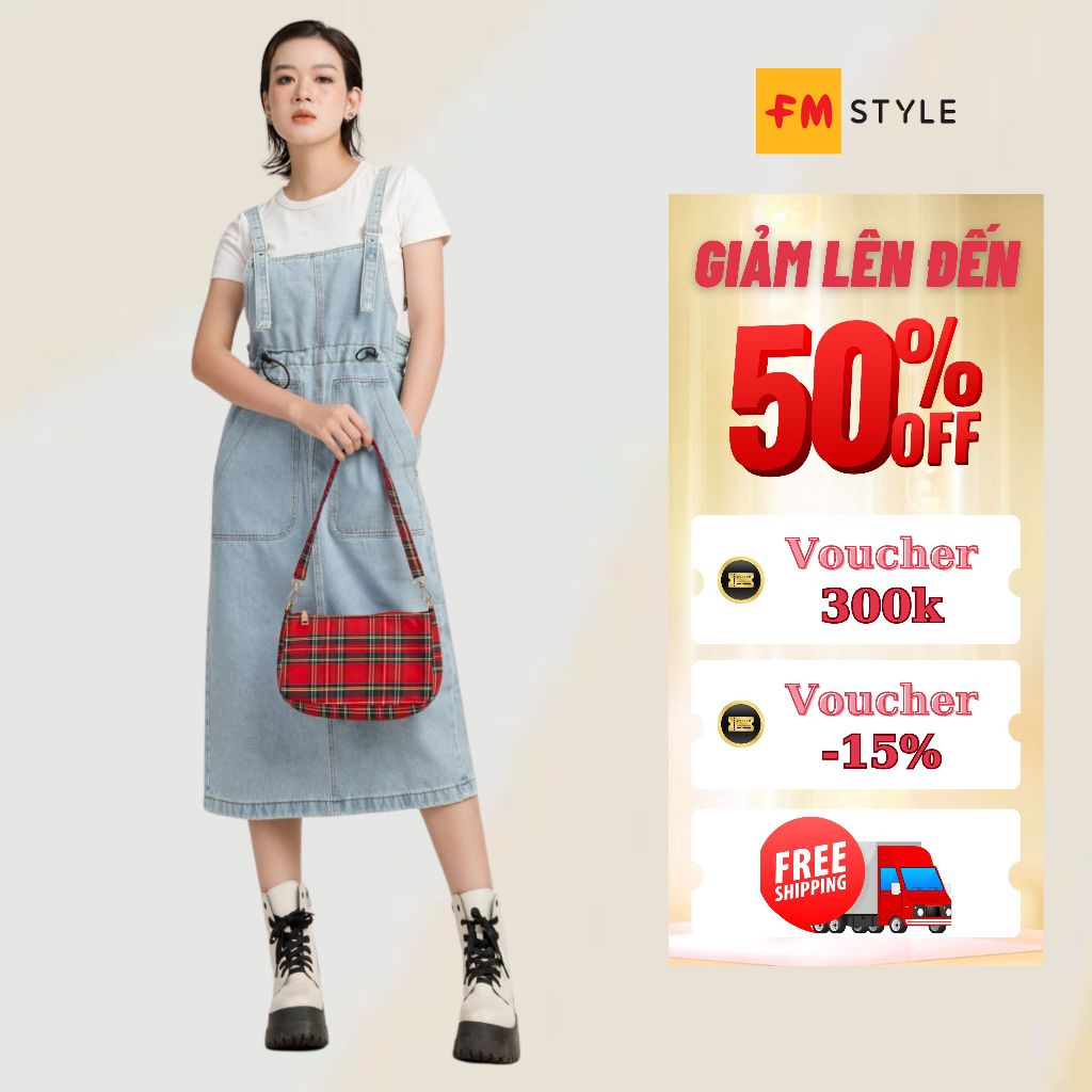 Yếm váy nữ Jeans FMSTYLE dáng dài rút eo chất denim cao cấp không phai màu cá tính hiện đại 23060466